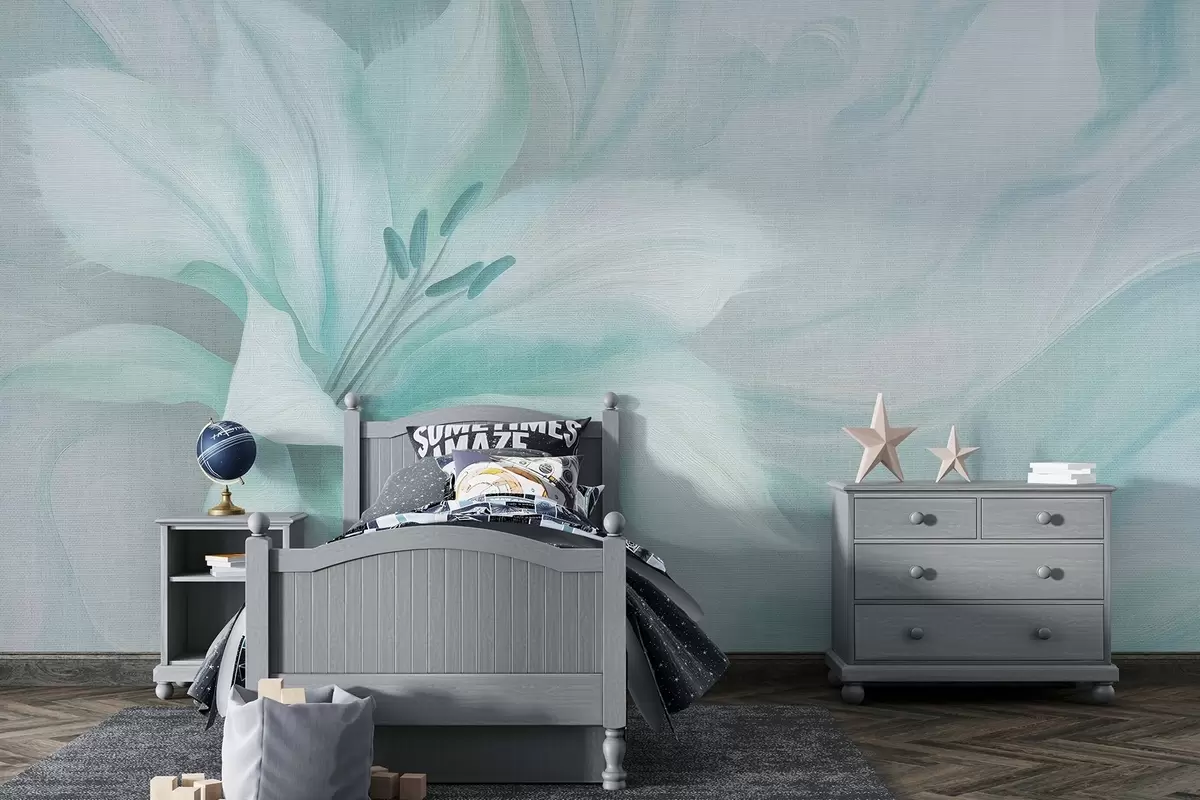 Fototapet Liljeblomma flytande abstraktion, blommig, akvamarinfärger Nr. w04006v3