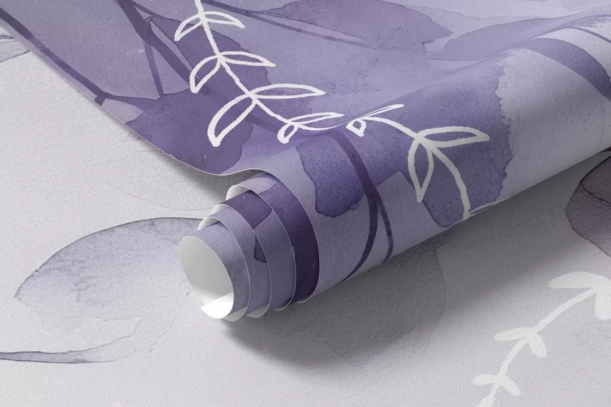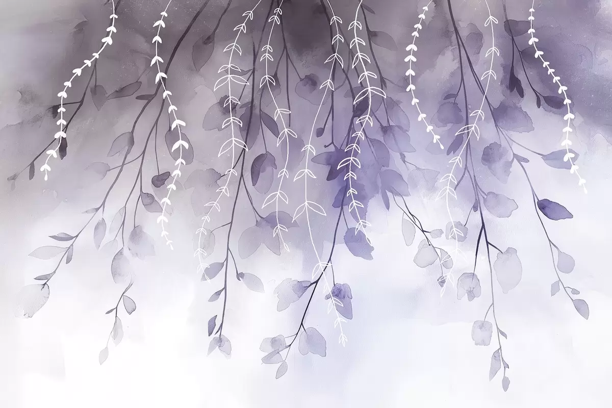 Fototapet Grenar med blad i akvarellstil, naturliga lila färger Nr. w04007v2