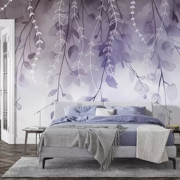 Fototapet Grenar med blad i akvarellstil, naturliga lila färger Nr. w04007v2