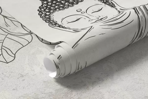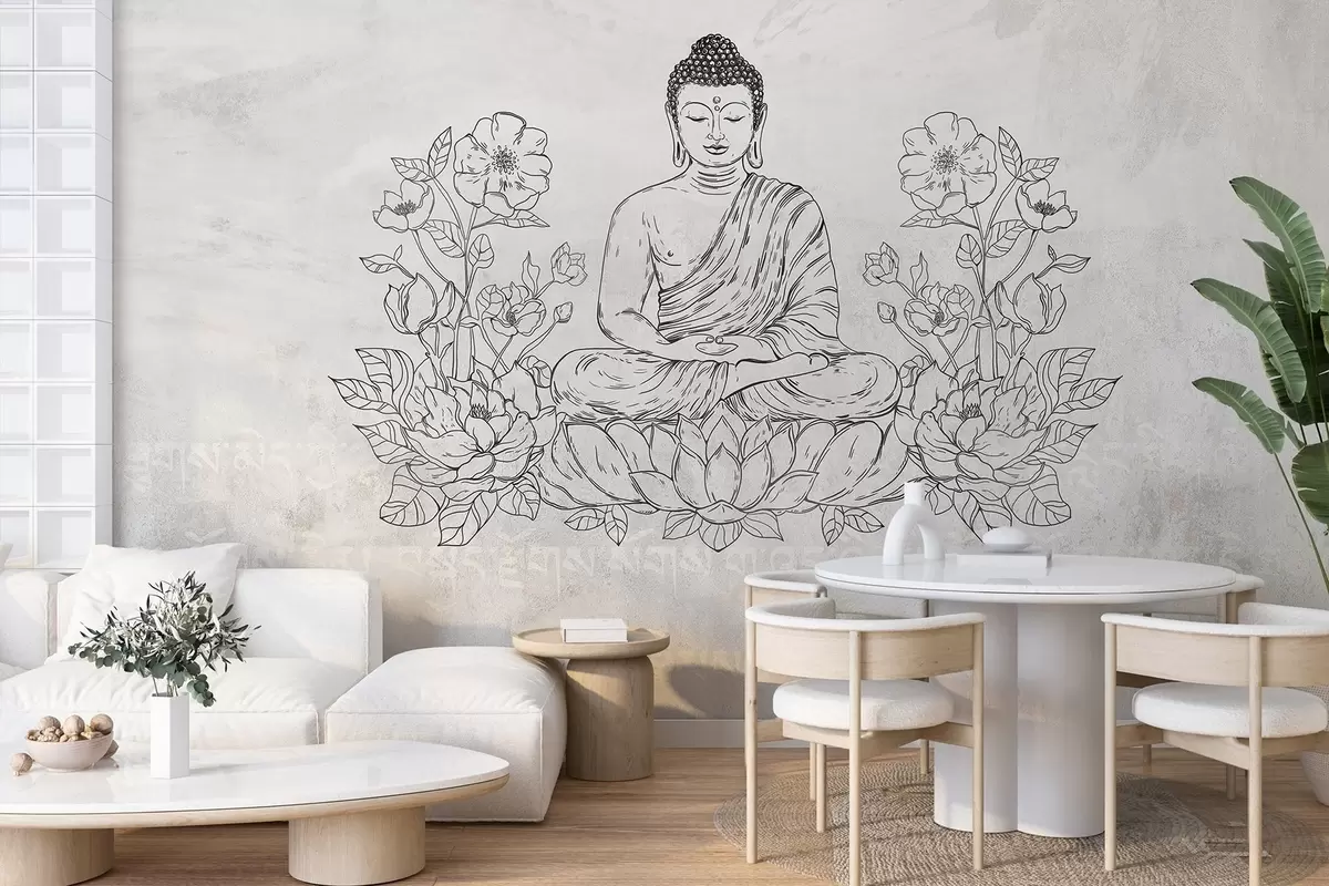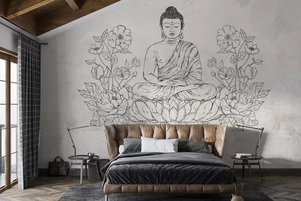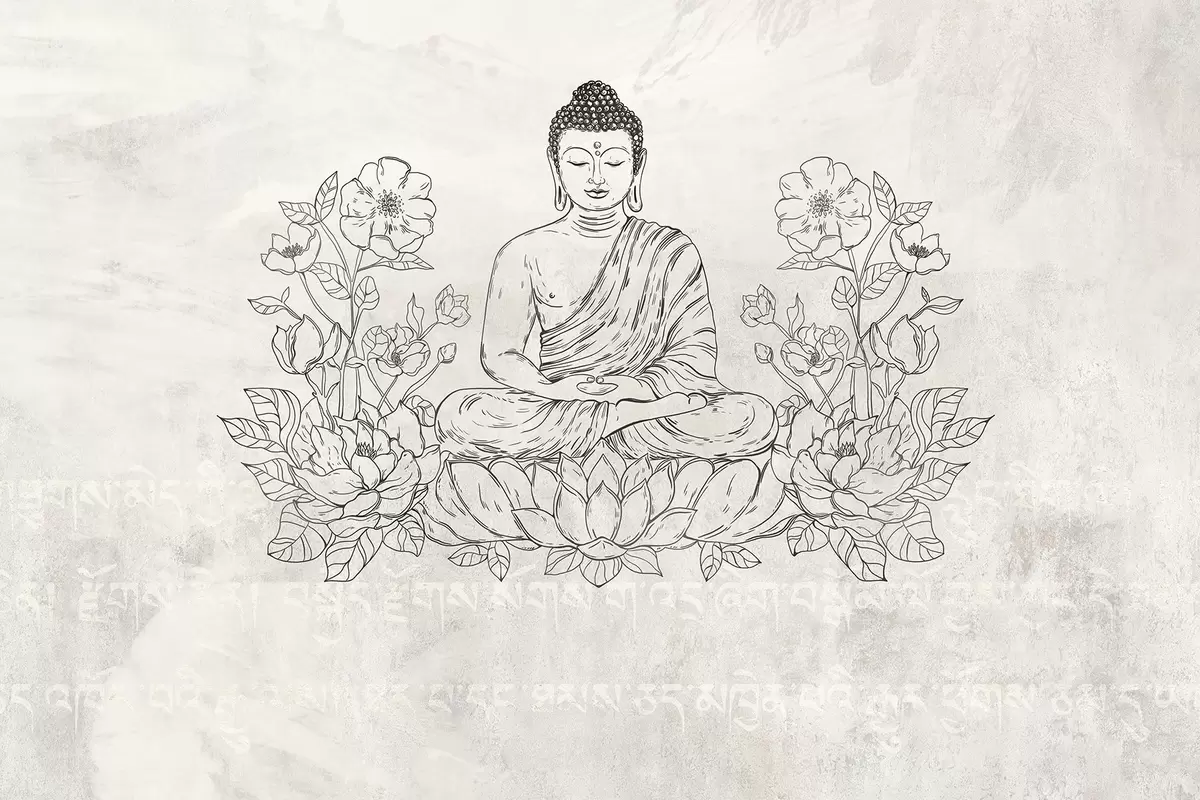 Fototapet Mediterande Buddha med lotusblommor, linjekonst, orientalisk, beige bakgrund Nr. w04008v1