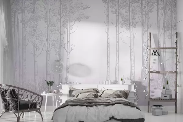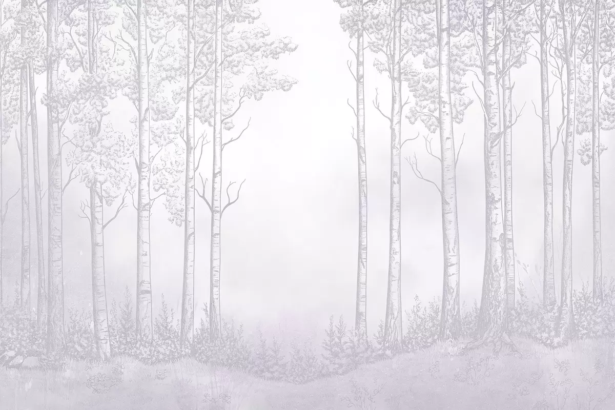 Fototapet Skog med björkar, minimalism, natur, rosa färgpalett Nr. w04009v2
