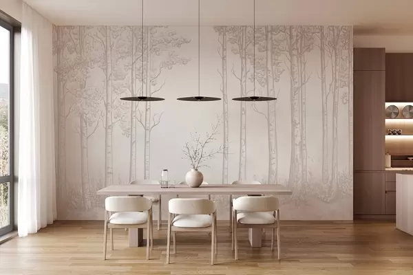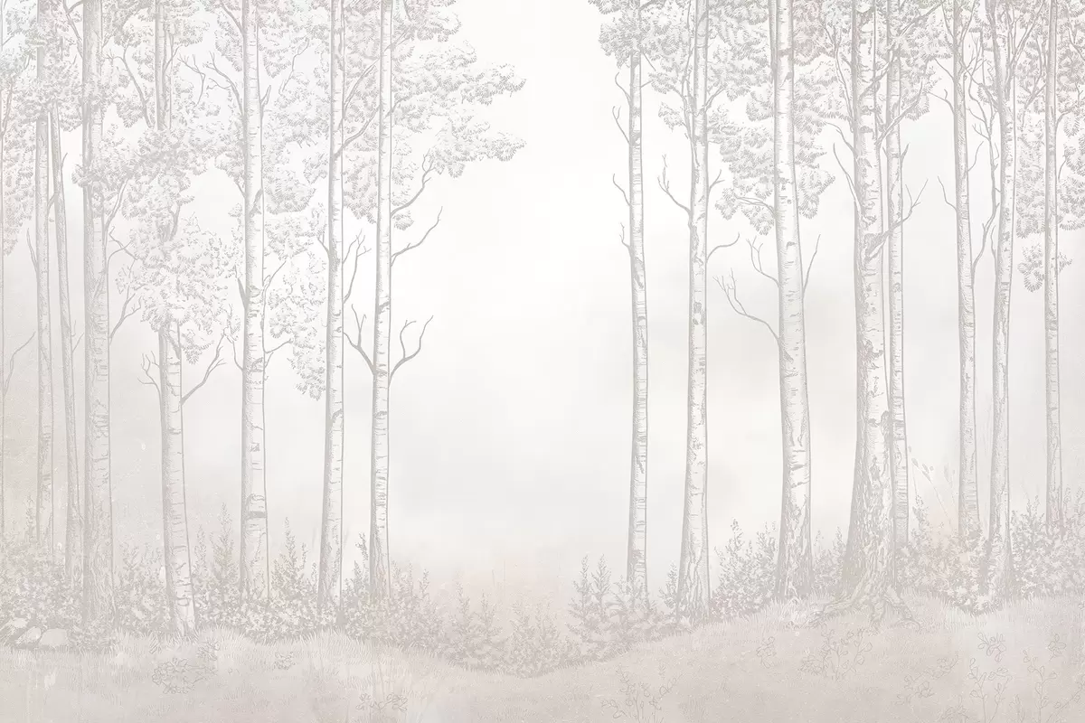 Fototapet Skog med björkar, minimalism, natur, beige färgpalett Nr. w04009v3