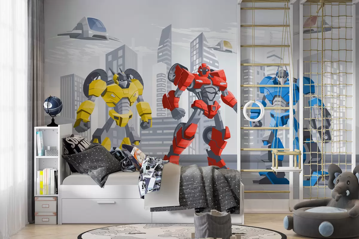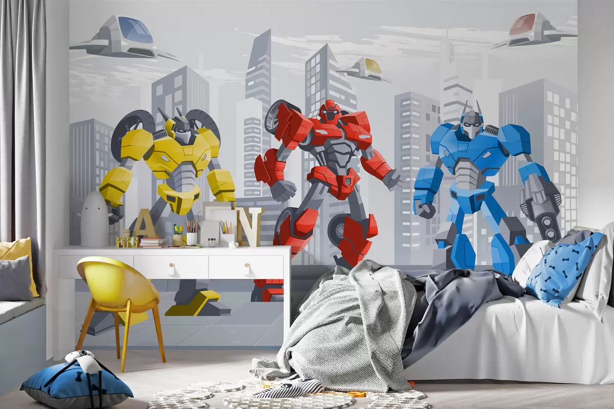 Fototapet Transformatorrobotar mot bakgrund av en monokrom stad Nr. w04012