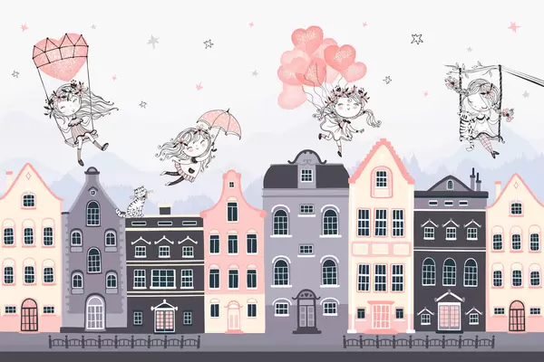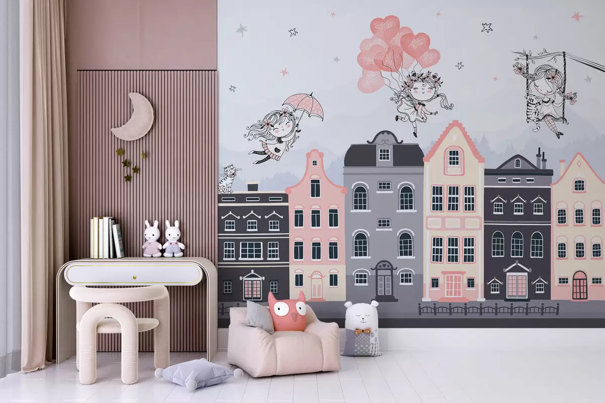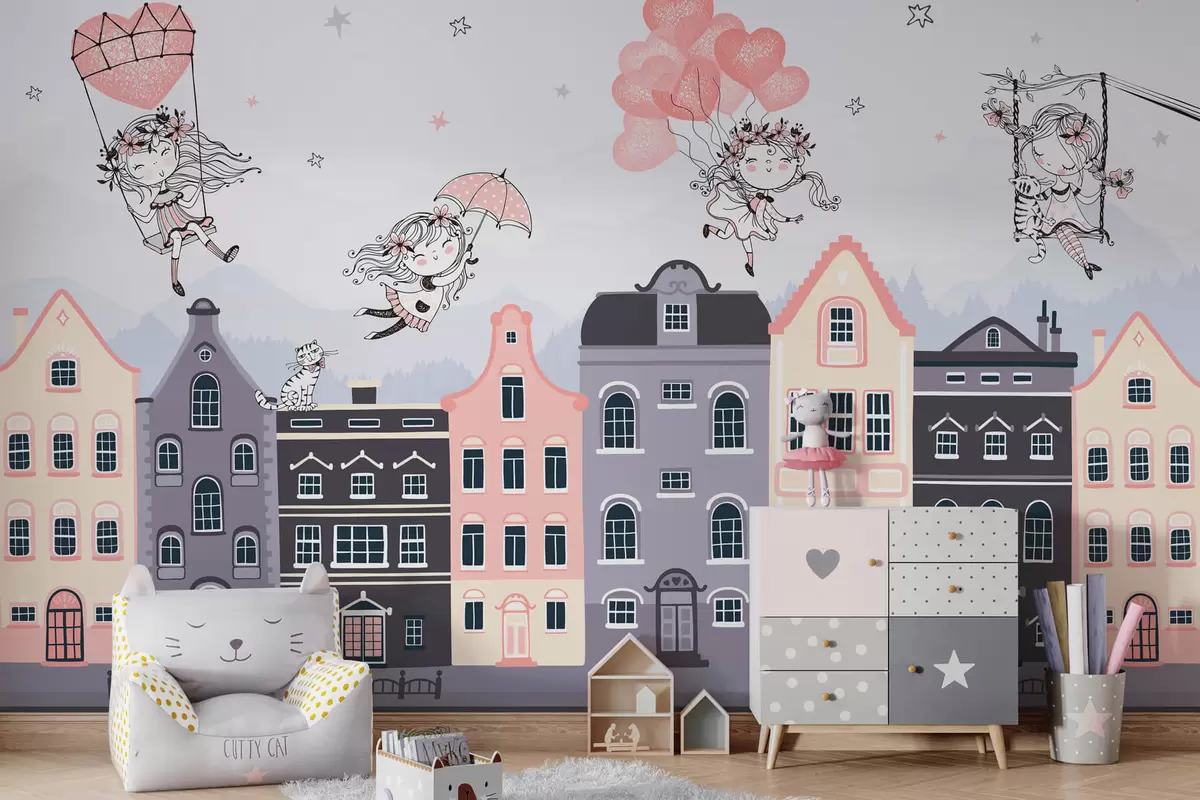 Fototapet Stadsbild med söta flickor Nr. w04014