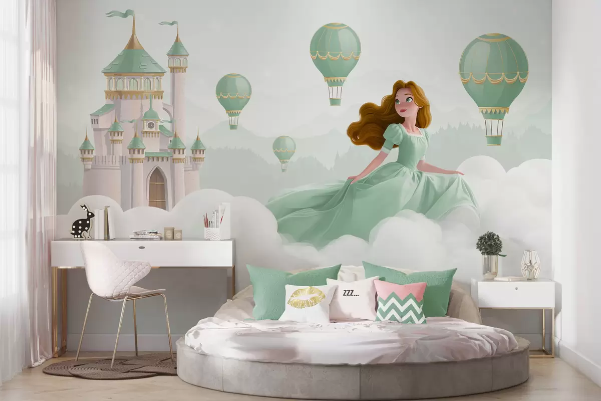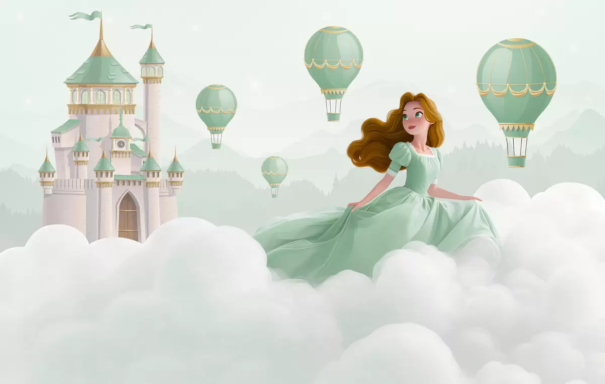 Fototapet Prinsessan bland molnen på bakgrunden av landskapet med slottet Nr. w04015v2