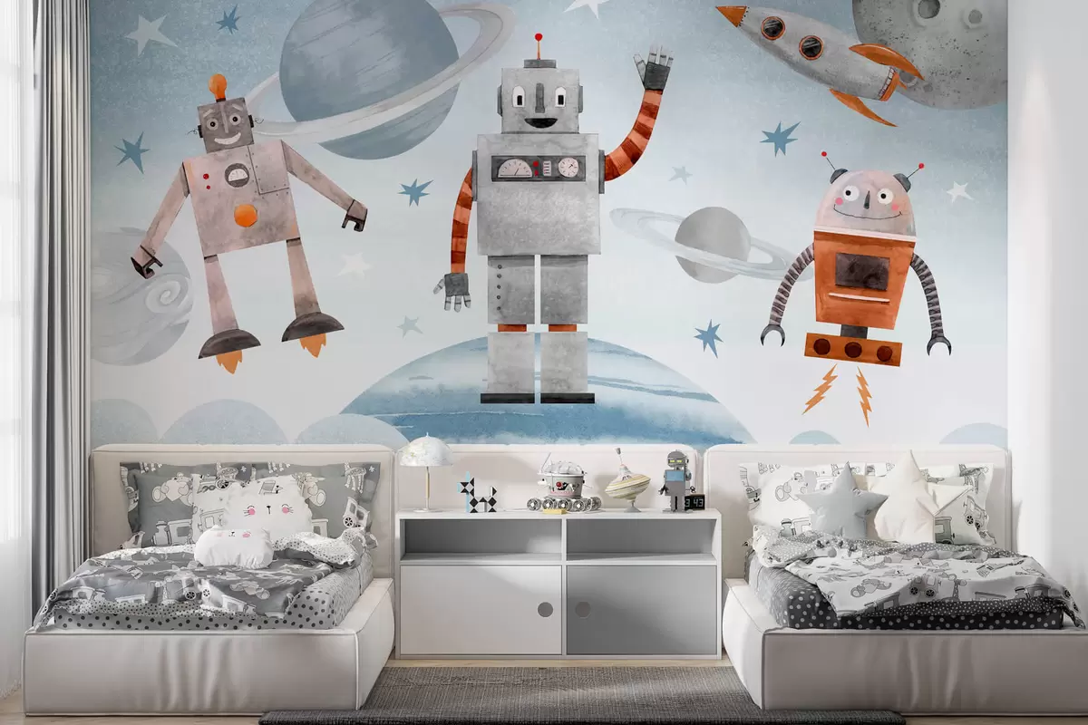 Fototapet Robotar i rymden i akvarellstil Nr. w04016