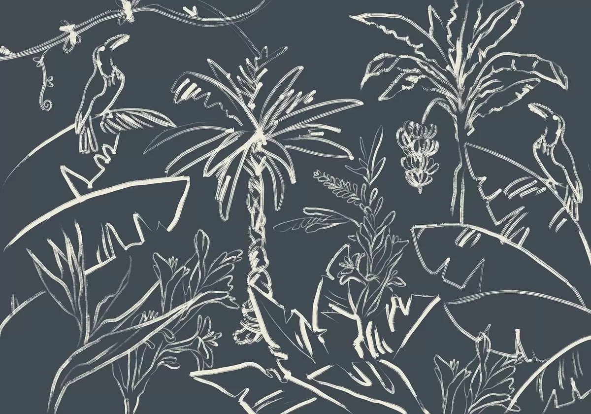 Fototapet Tropiskt mönster på mörkblå bakgrund, palmer, bananer Nr. w04020v4
