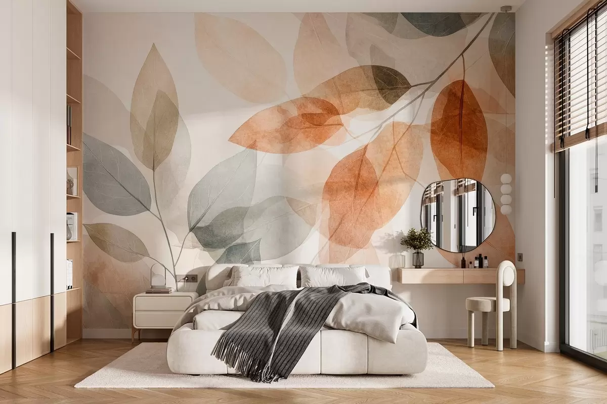 Fototapet blad i akvarellstil i nyanser av sepia och grått Nr. w04024