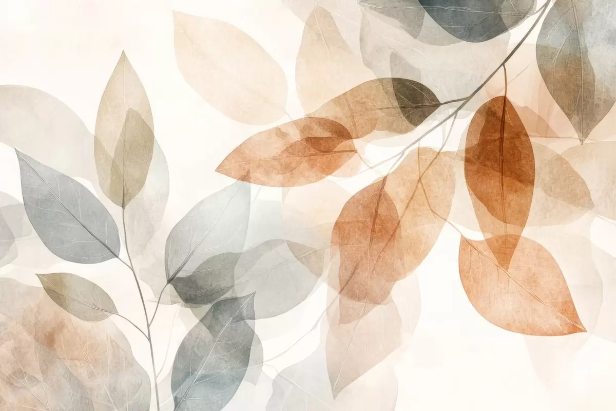 Fototapet blad i akvarellstil i nyanser av sepia och grått Nr. w04024