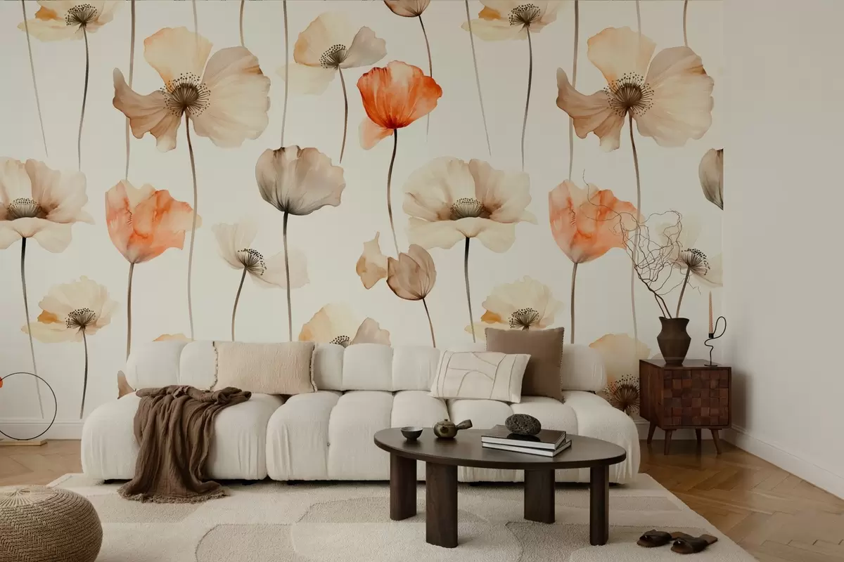 Fototapet lockiga vallmor i akvarellstil Nr. w04031