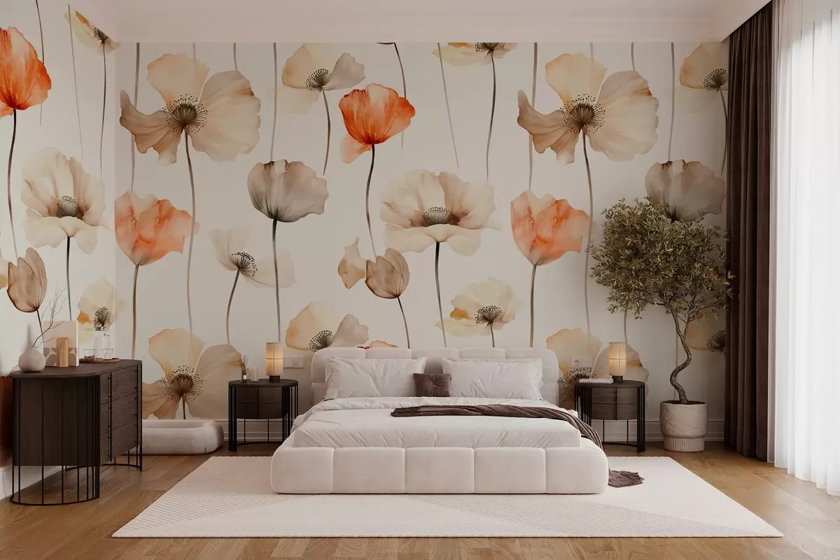 Fototapet lockiga vallmor i akvarellstil Nr. w04031