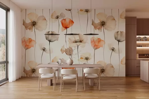 Fototapet lockiga vallmor i akvarellstil Nr. w04031