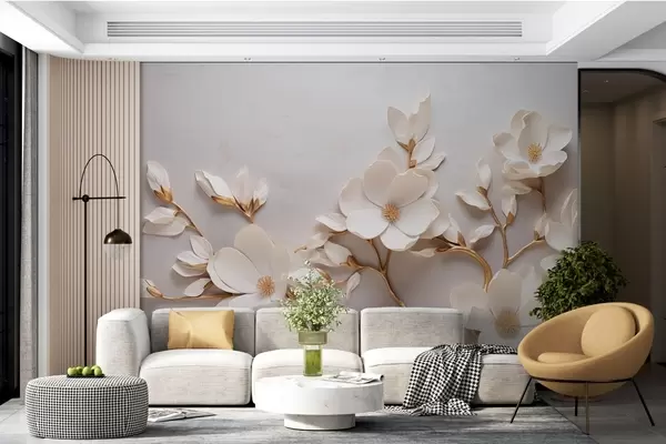 Fototapet Eleganta reliefblommor med mjukt tonade stjälkar bildar en lugn, harmonisk scen w04039