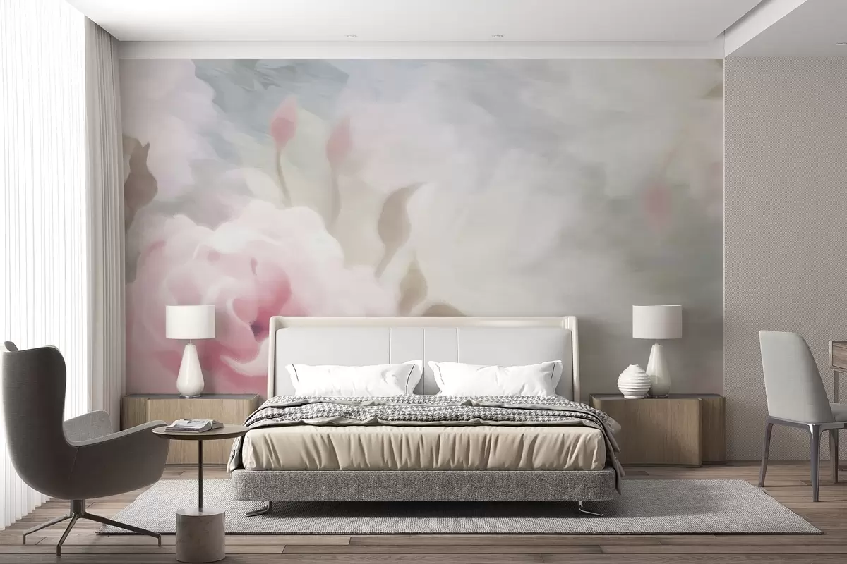 Fototapet Pionblommor på en suddig bakgrund Nr. w04046