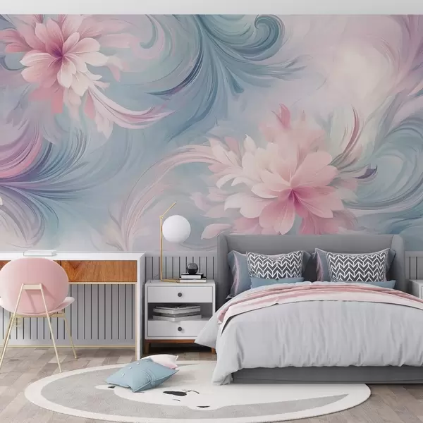 Fototapet Blommor och blad i rosa och blå färg Nr. w04048