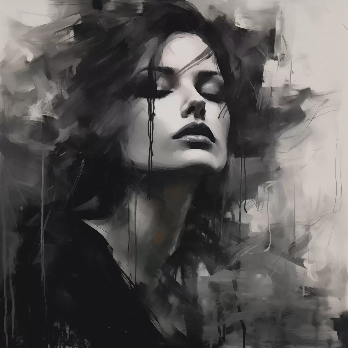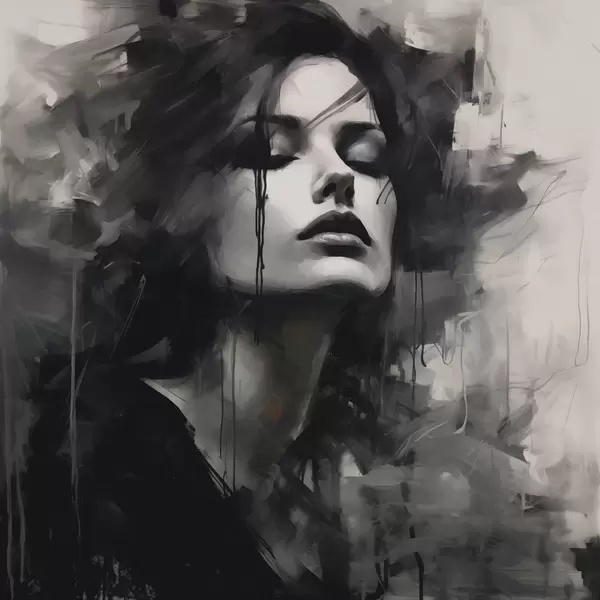 Fototapet Porträtt av en kvinna i grå och svarta plagg Nr. w04049