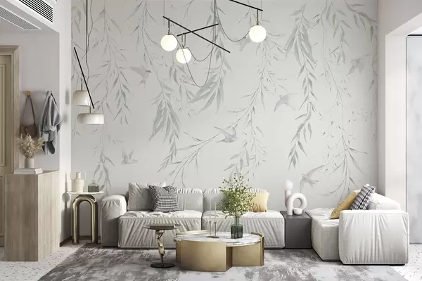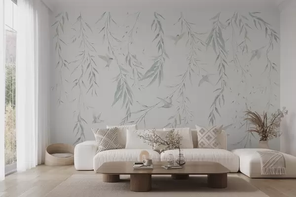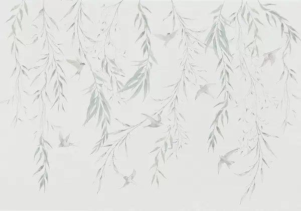 Fototapet Kvistar med gröna blad hängande och fåglar Nr. w04052