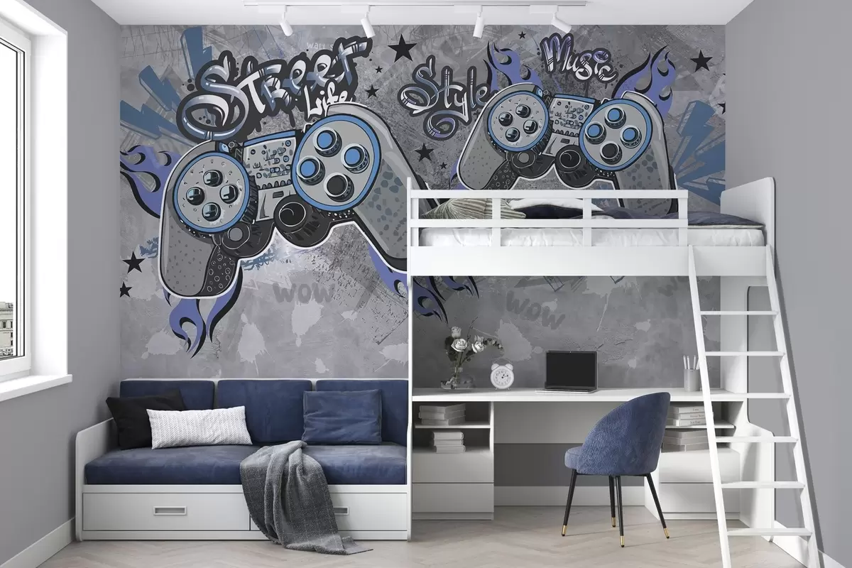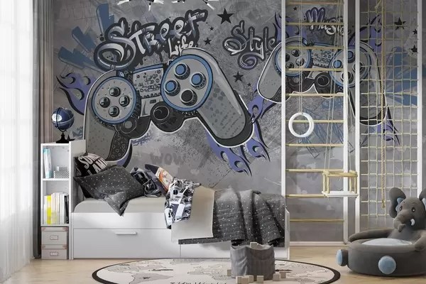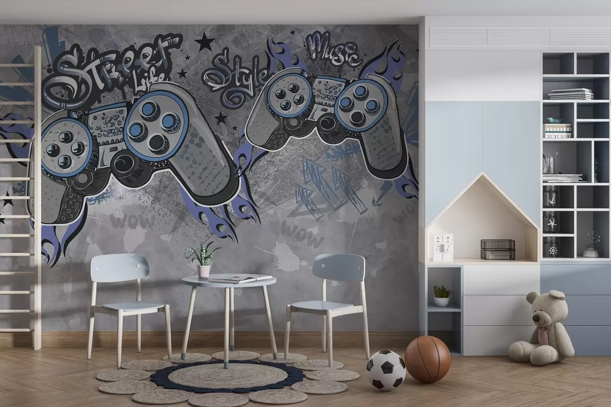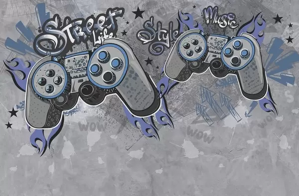 Fototapet Konsoler i street art-stil på grunge-väggen Nr. w04054