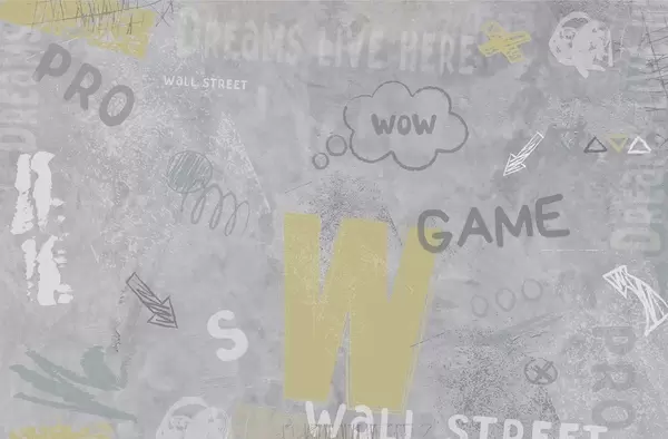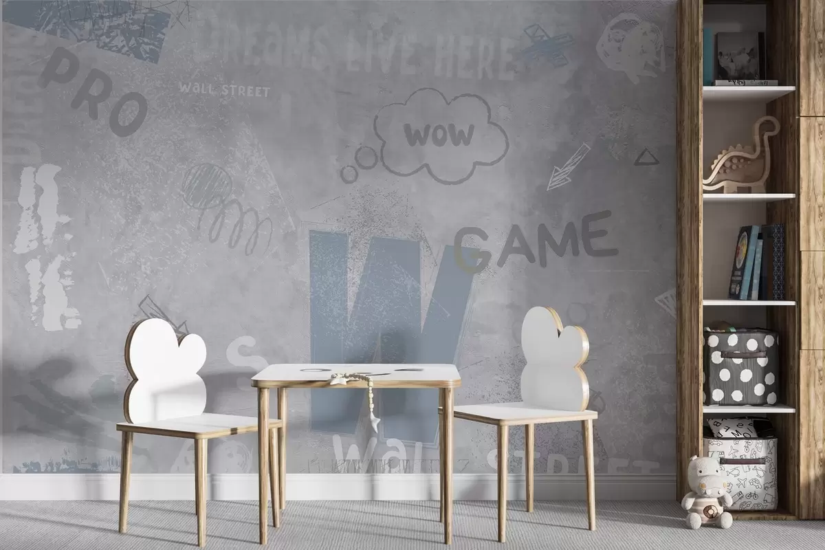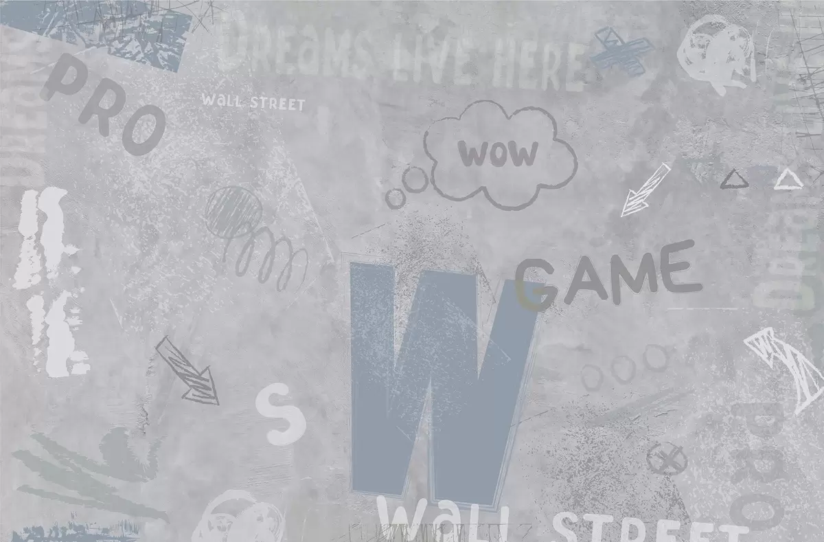 Fototapet Design i gatukonststil med blå färginskriptioner på bakgrunden av betongvägg Nr. w04056v1