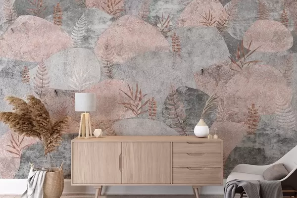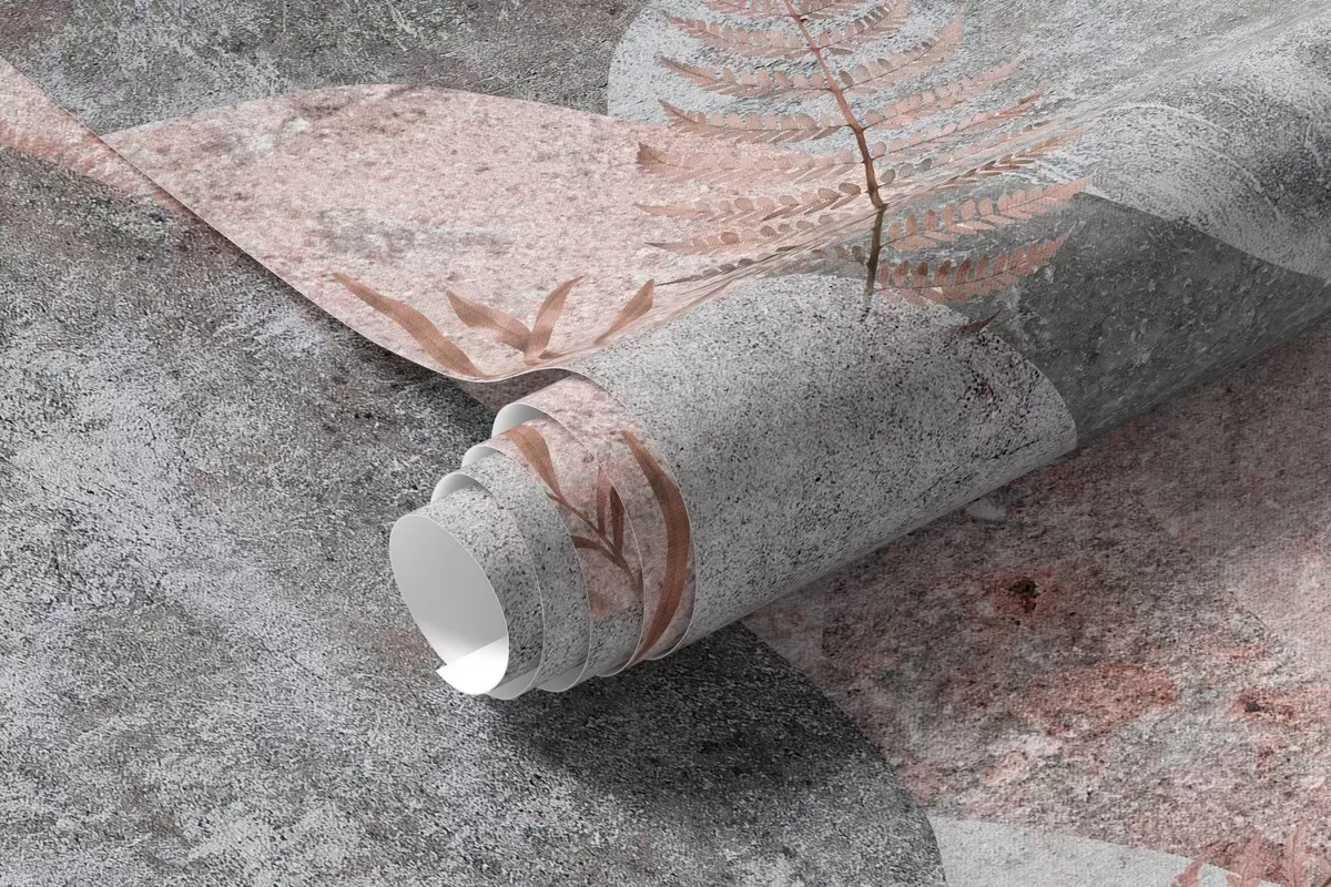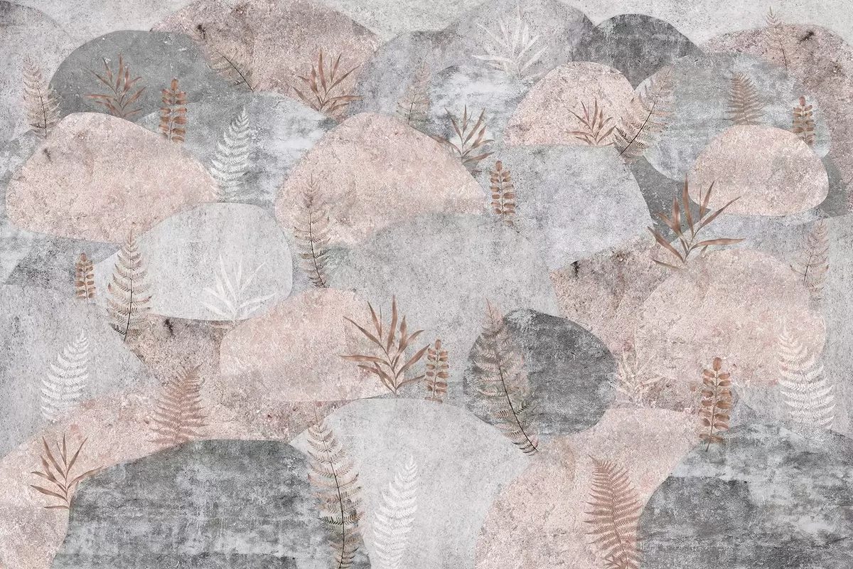 Fototapet Stenar med växter, ormbunke, nordisk, rustik stil, grå och rosa färger Nr. w04064v1
