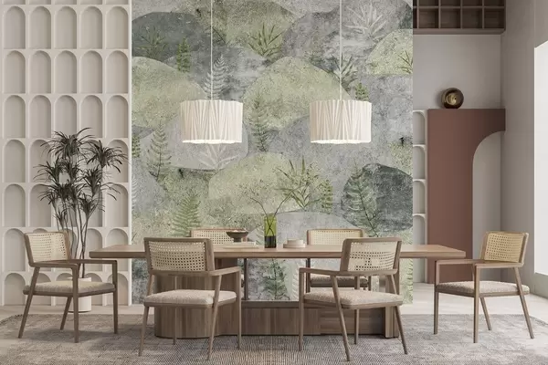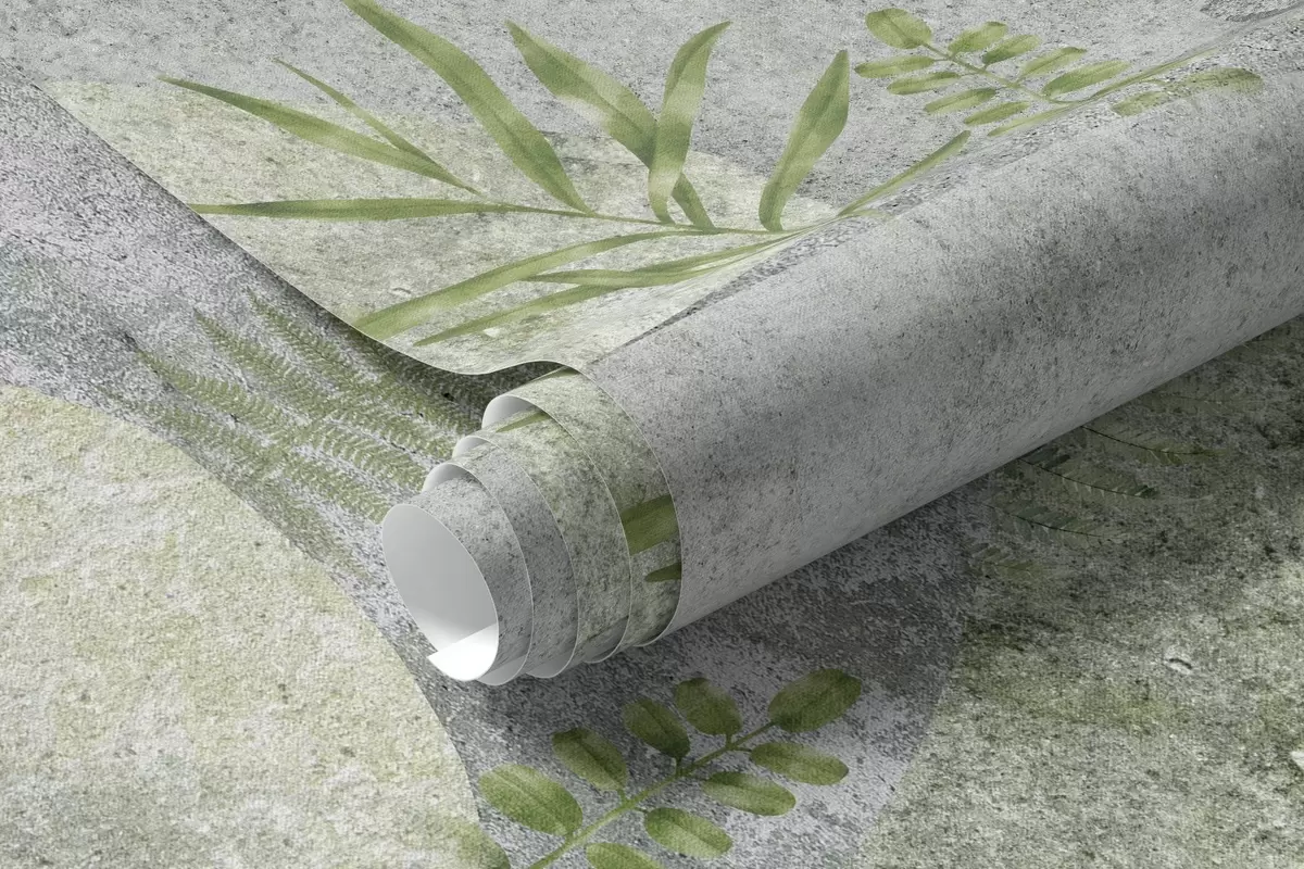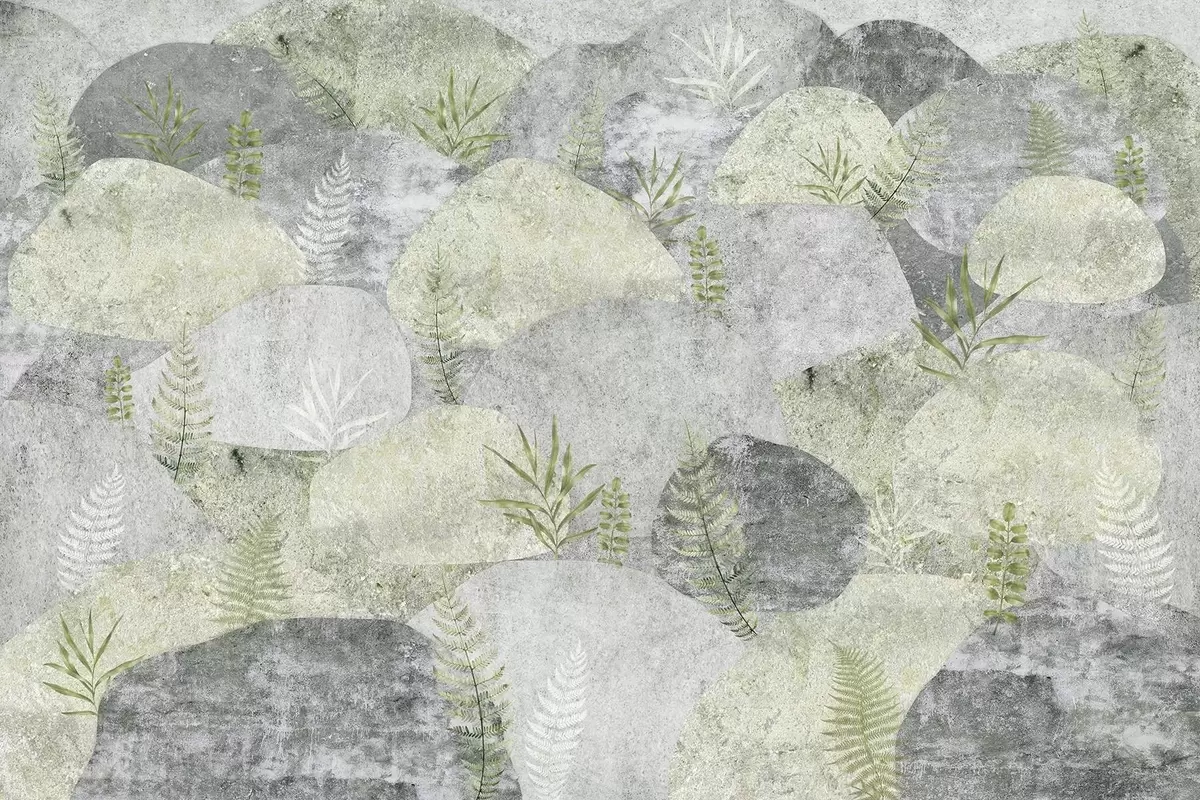 Fototapet Stenar med växter, ormbunke, nordisk, rustik stil, grå och gröna färger Nr. w04064v2