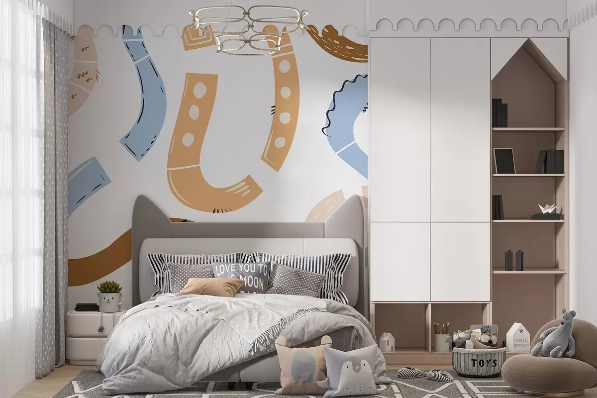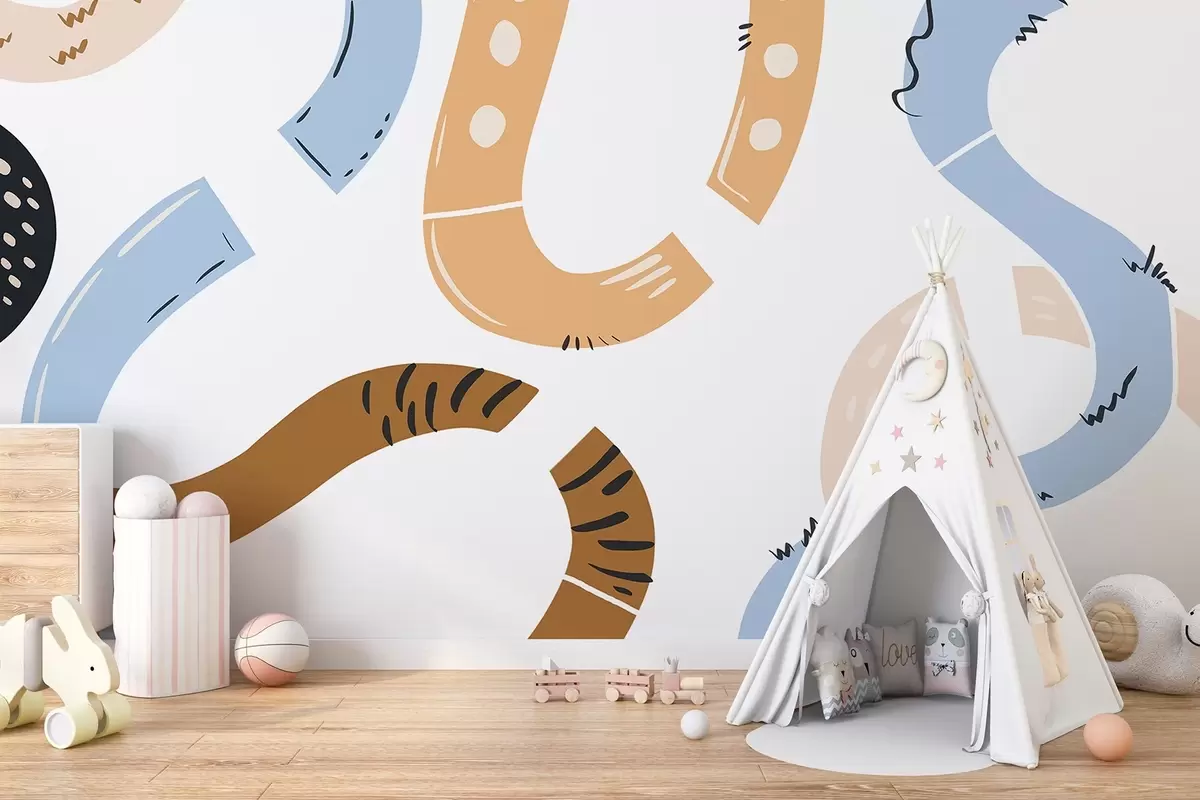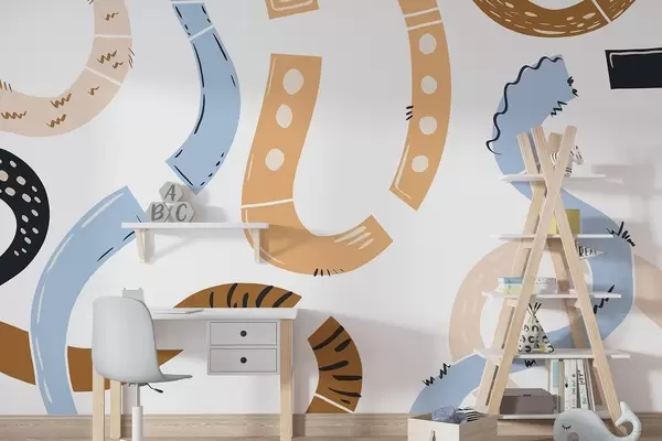 Fototapet Abstrakta teckningar, ungdomlig, klotter, brun, blå, rosa Nr. w04066