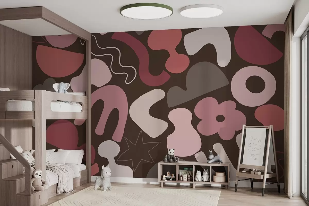 Fototapet Geometriska figurer, ungdomlig, abstraktion, mörk vinröd bakgrund Nr. w04067