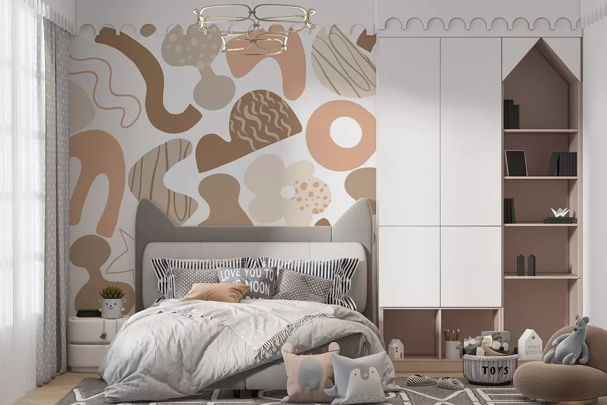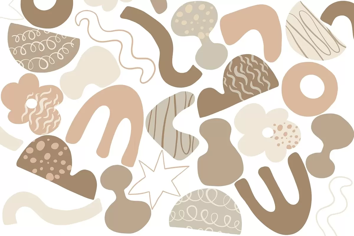 Fototapet Geometriska figurer med klotter ritning, ungdomlig, beige färgpalett Nr. w04068