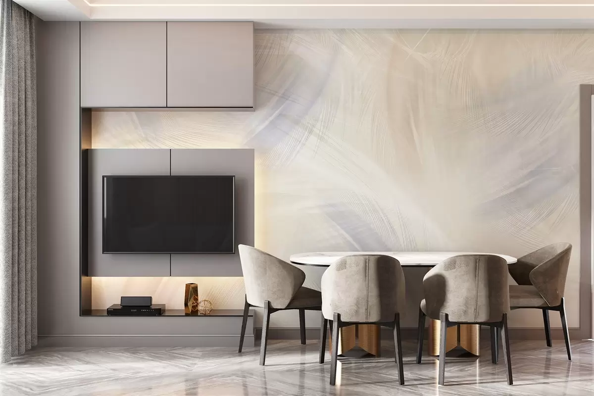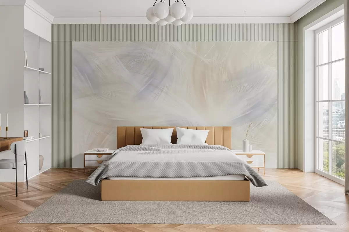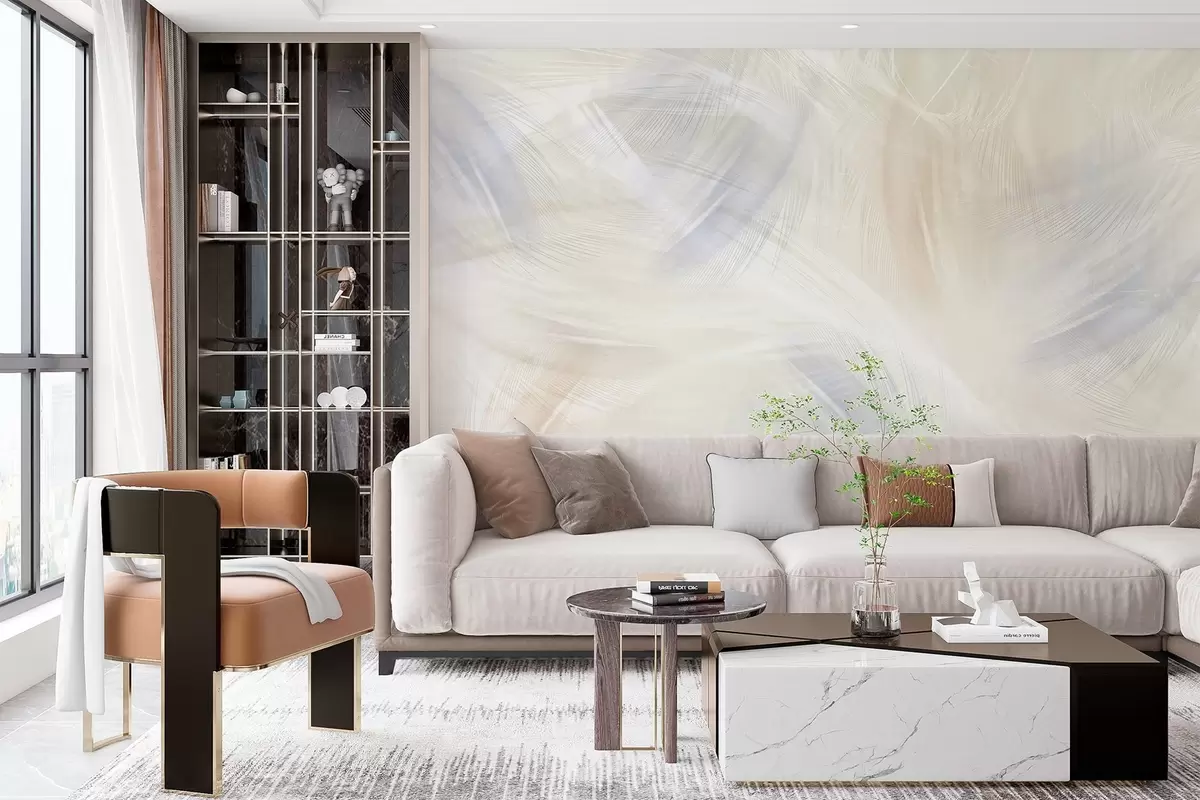 Fototapet luftiga fjädrar i nyanser av blått och beige Nr. w04071v2