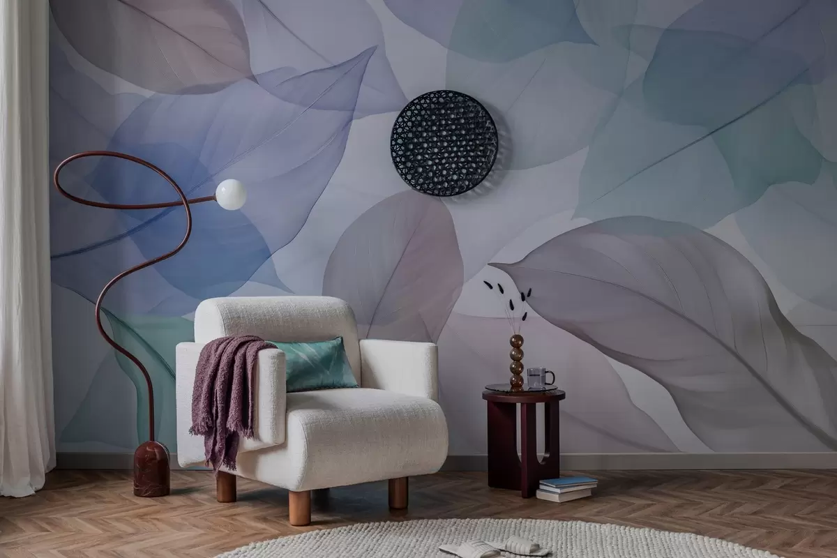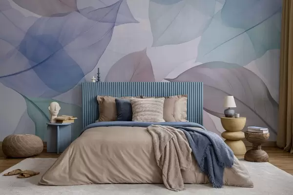 Fototapet Genomskinliga blad med ådror i blå och bruna toner Nr. w04075