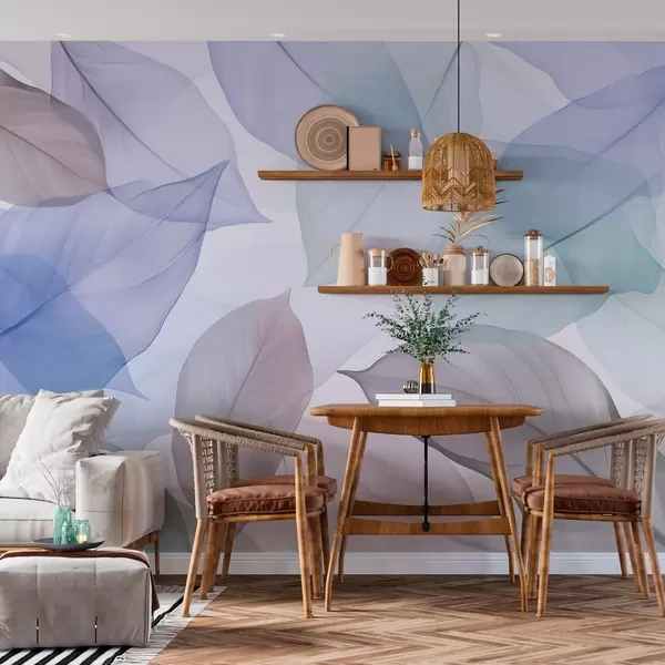 Fototapet Genomskinliga blad med ådror i blå och bruna toner Nr. w04075