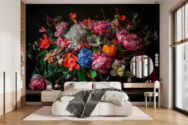 Fototapet bukett i stil med holländsk oljemålning från XVII-talet med en lyxig blomsterkomposition. Nr. w04078