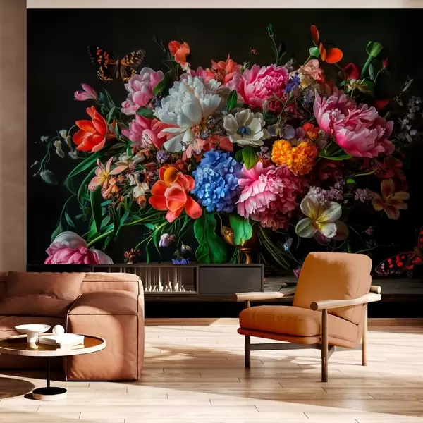 Fototapet bukett i stil med holländsk oljemålning från XVII-talet med en lyxig blomsterkomposition Nr. w04078