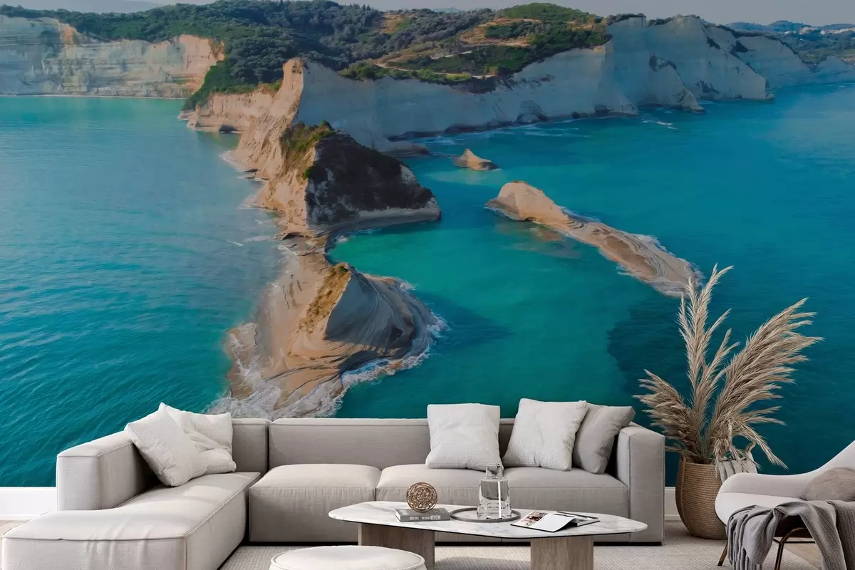 Fototapet Grekland ö, oljestil textur, havskust, akvamarin vatten, realism Nr. w04094