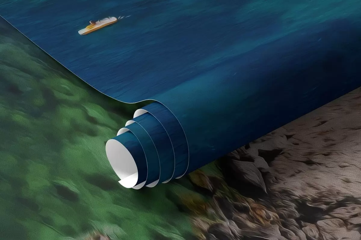 Fototapet Klippberg nära havet, oljestilsteckning, akvamarinvatten Nr. w04096