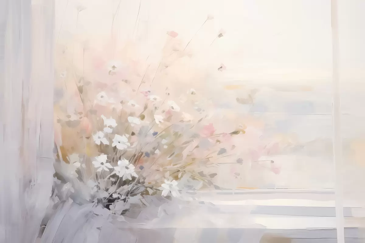 Fototapet Blomsterbukett vid fönstret imitation av målning Nr. w04101