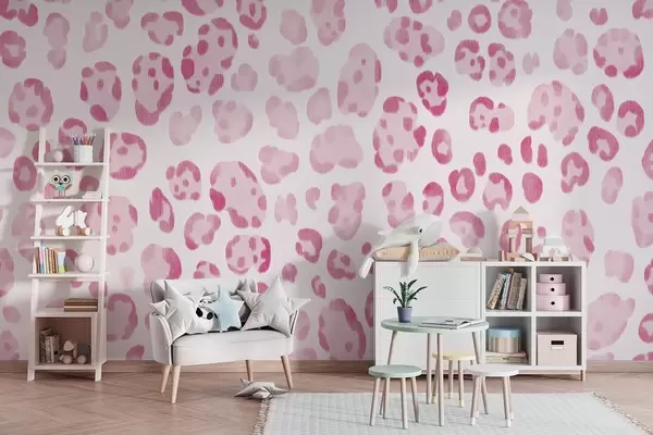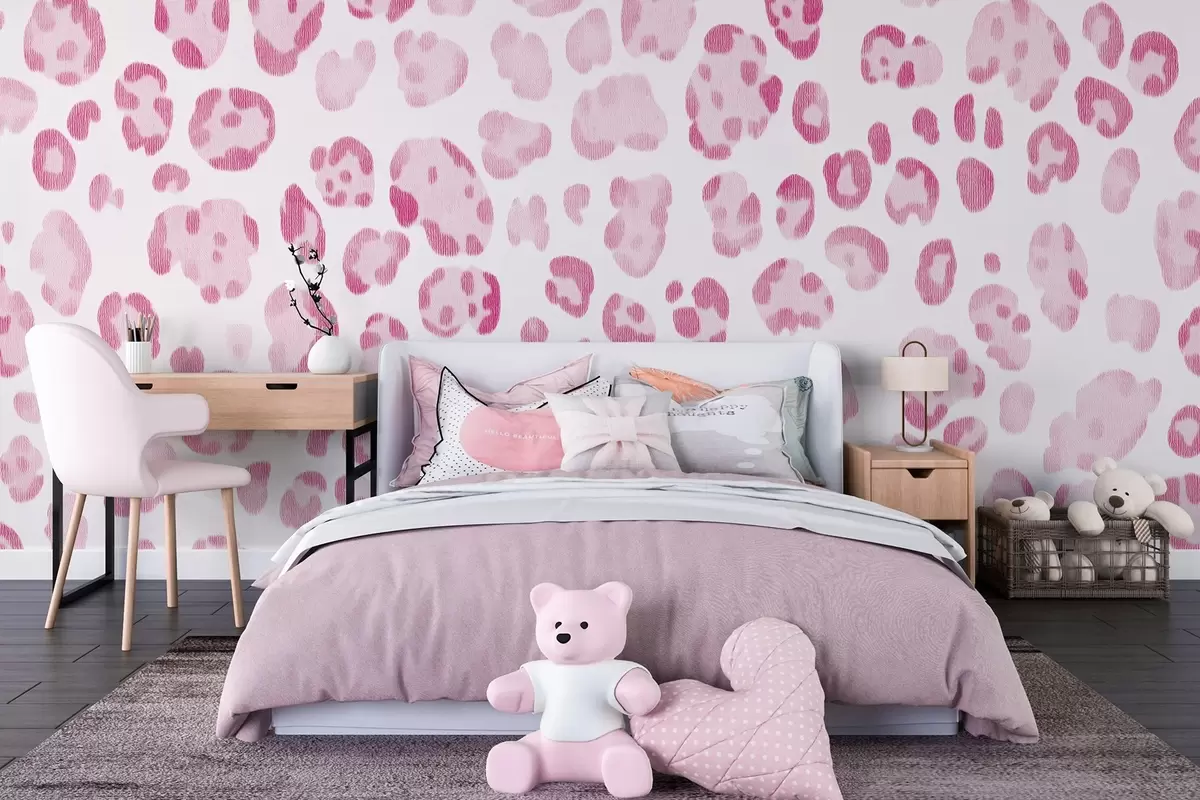 Fototapet Leopardmönster, ullstruktur, rosa färg Nr. w04112v2