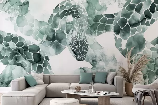 Fototapet Silhuett av orm, akvarellstil, gröna färger Nr. w04113v2