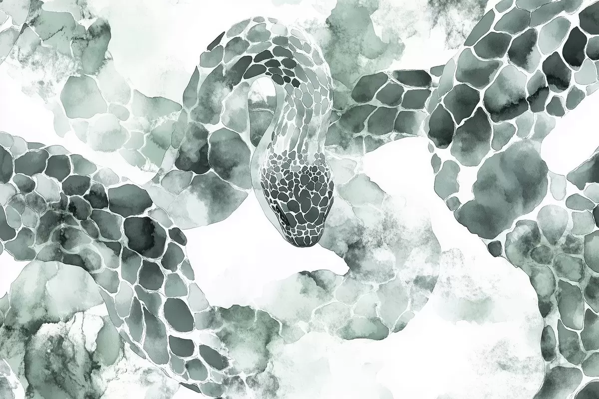 Fototapet Silhuett av orm, akvarellstil, gröna färger w04113v2