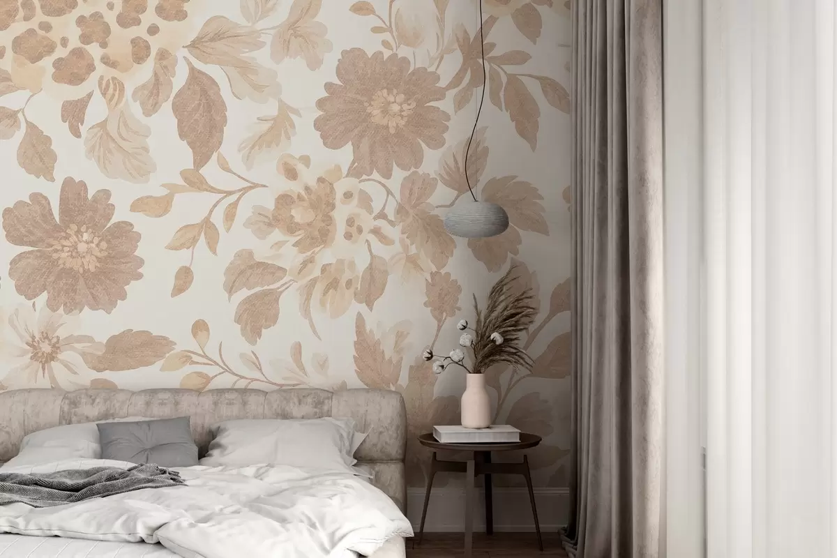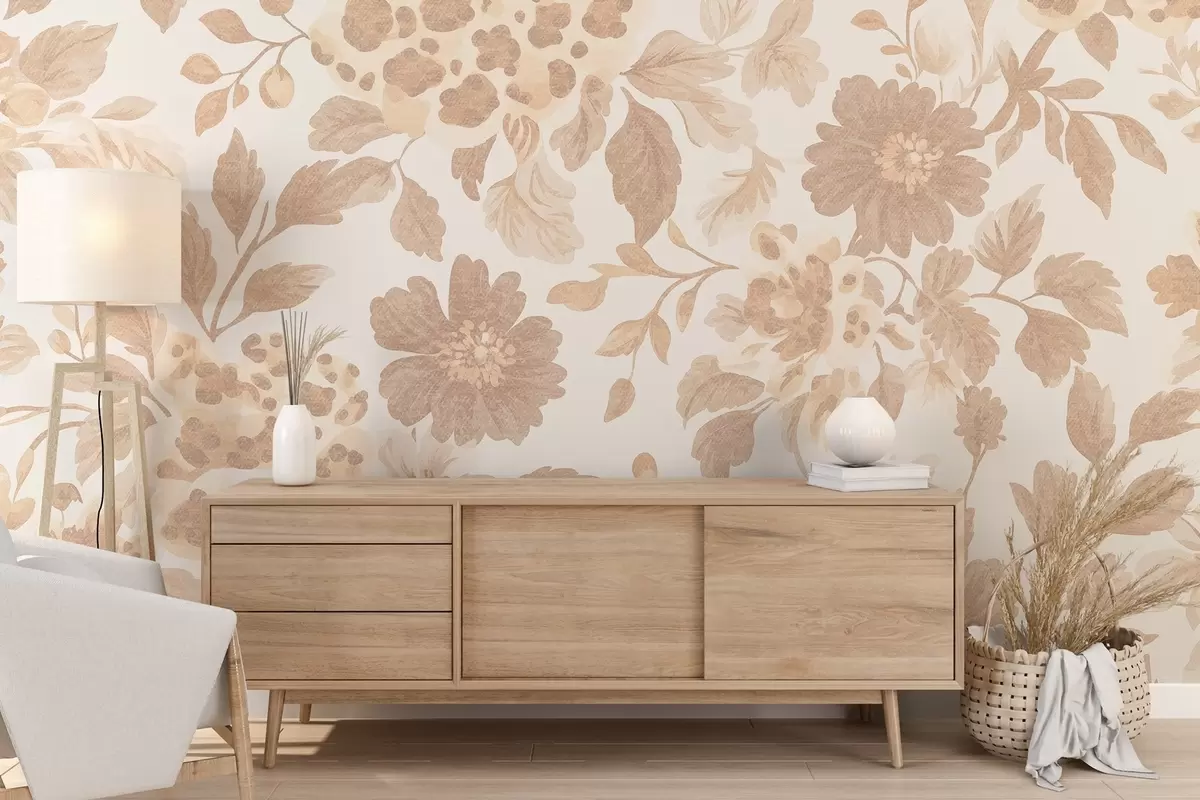 Fototapet Blommor i boho-stil med leopardtryck, beige färg Nr. w04114