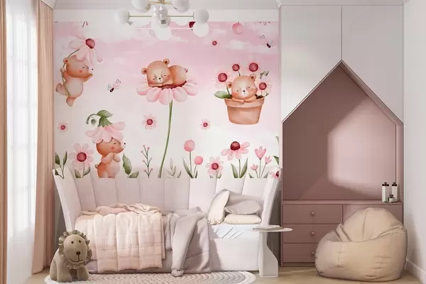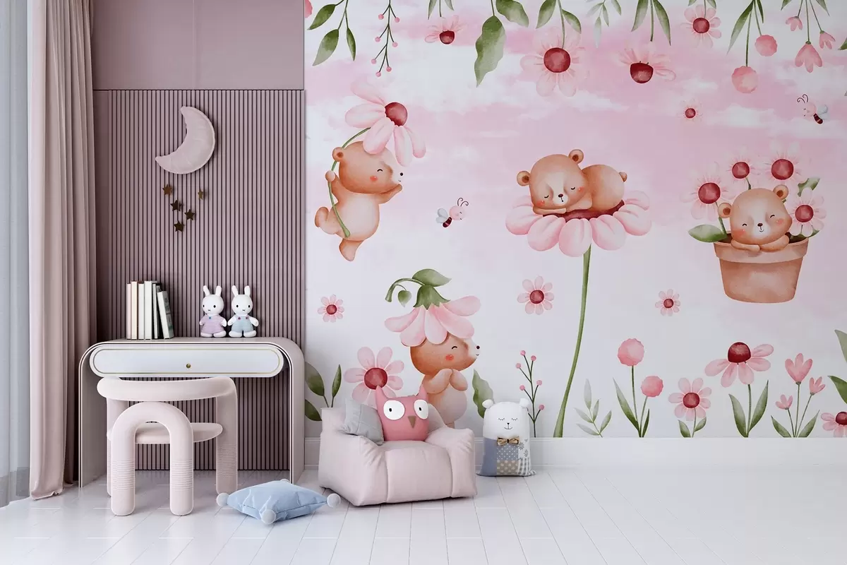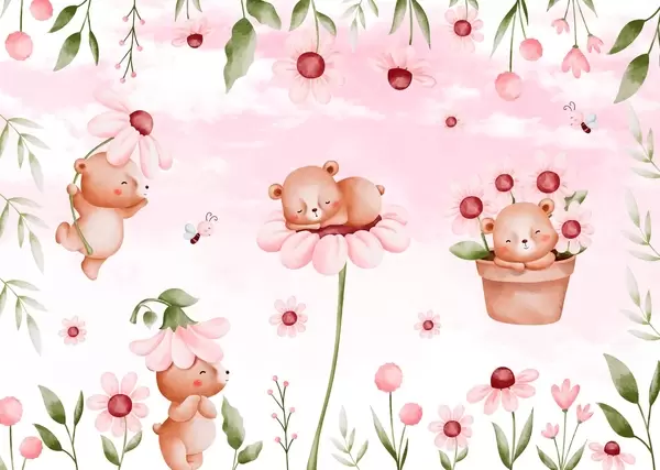Fototapet Björnar med blommor, sagodjur Nr. w04143