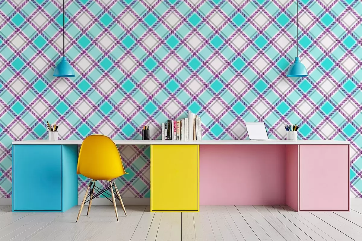 Fototapet rutigt mönster i blå toner Nr. w04167