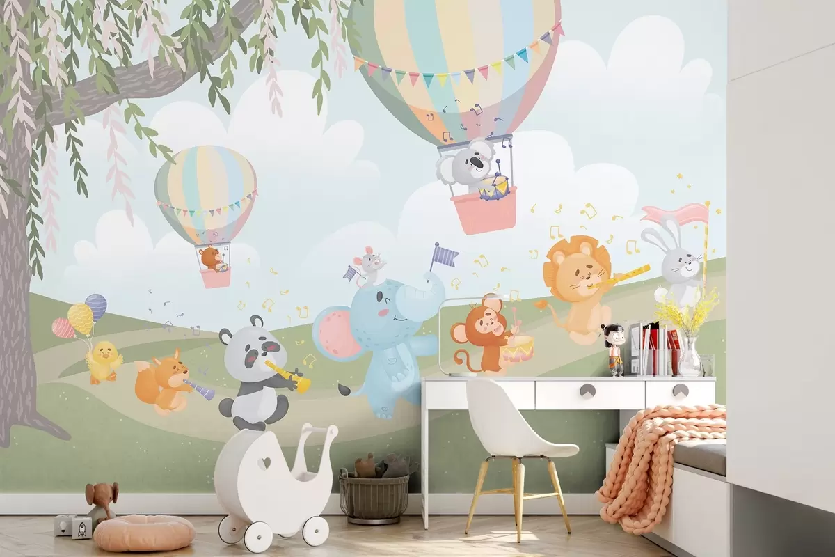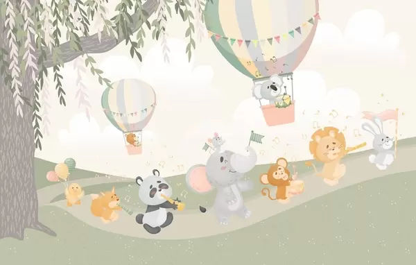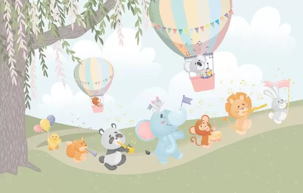 Fototapet Landskap med djur som spelar musikinstrument Nr. w04200