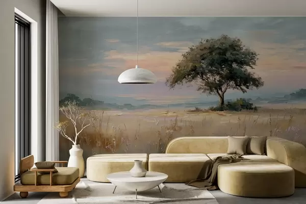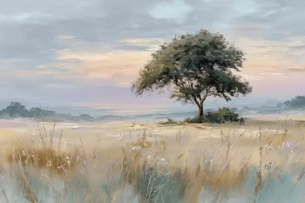 Fototapet träd mitt på ett fält i stil med oljemålning Nr. w04206