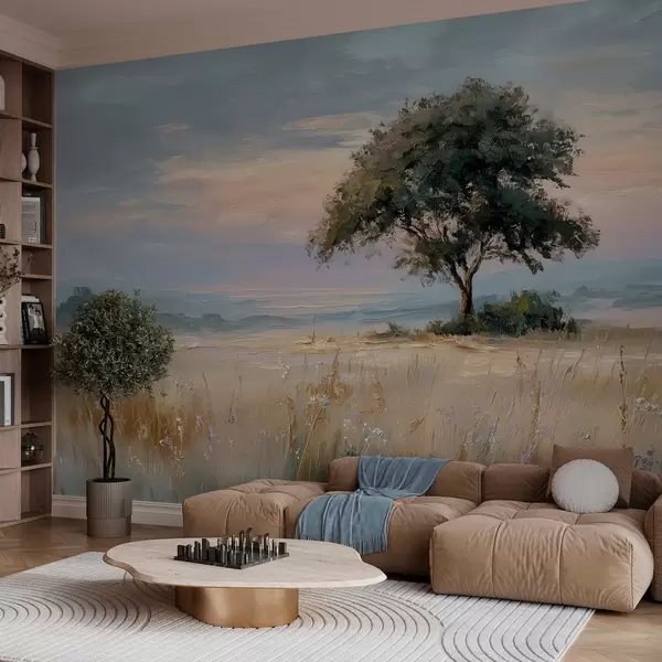 Fototapet träd mitt på ett fält i stil med oljemålning Nr. w04206