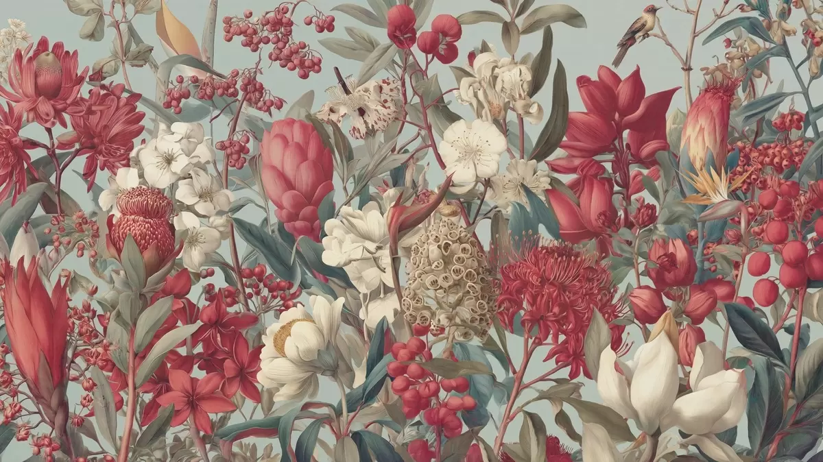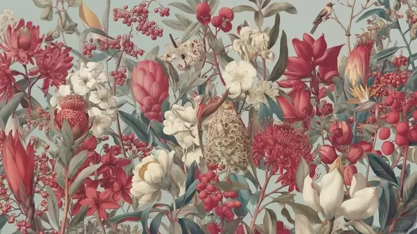 Fototapet texturerade tropiska blommor på en blå bakgrund Nr. w04209