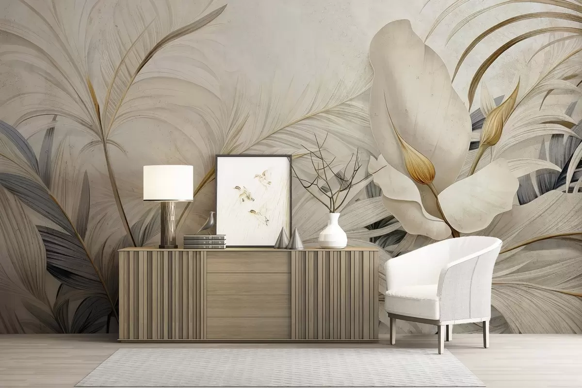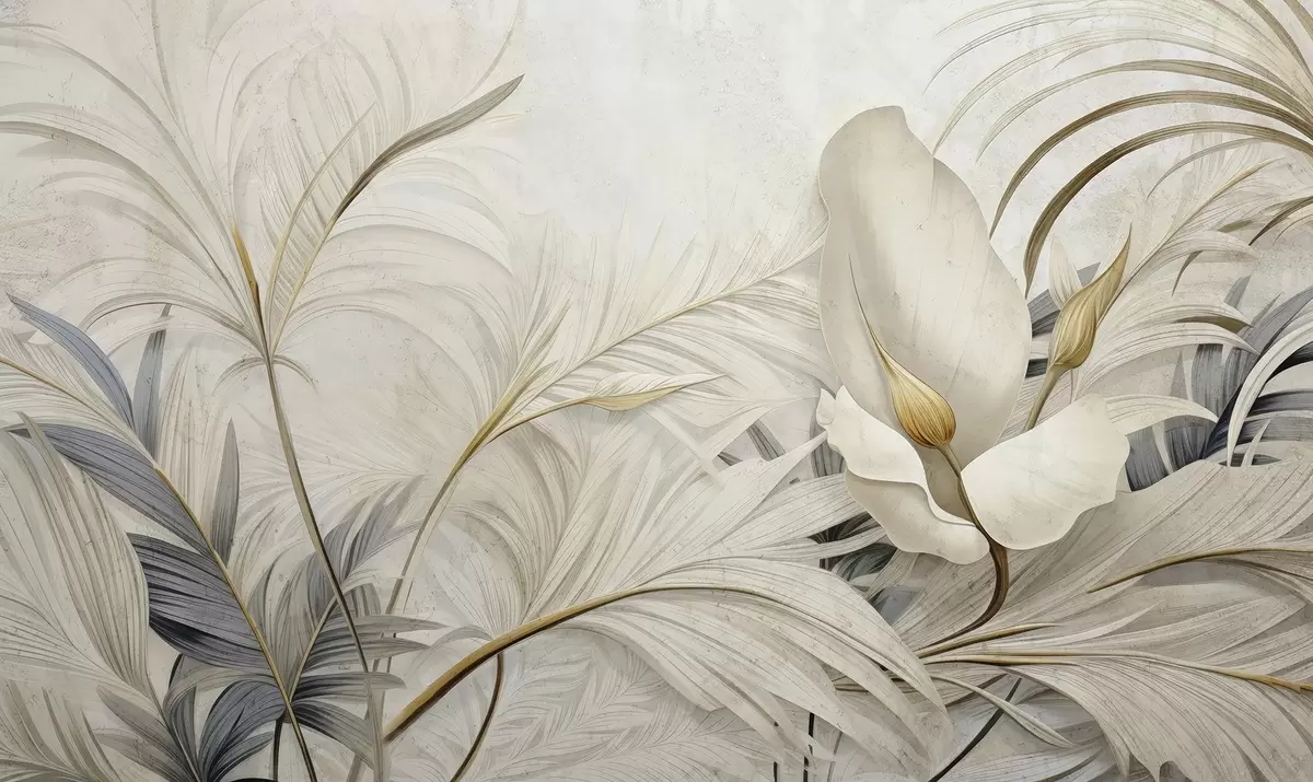 Fototapet Tropiska växter på en betongvägg Nr. w04249