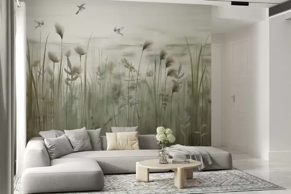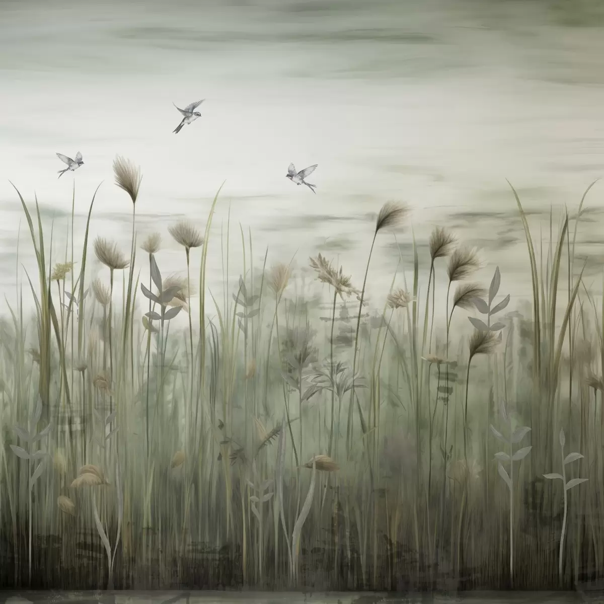 Fototapet Light-version av gräslandskap med svalor Nr. w04258