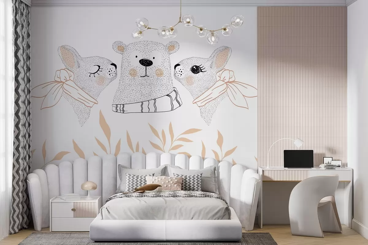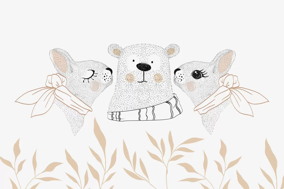 Fototapet Roliga djur, harar och en björnunge Nr. w04269