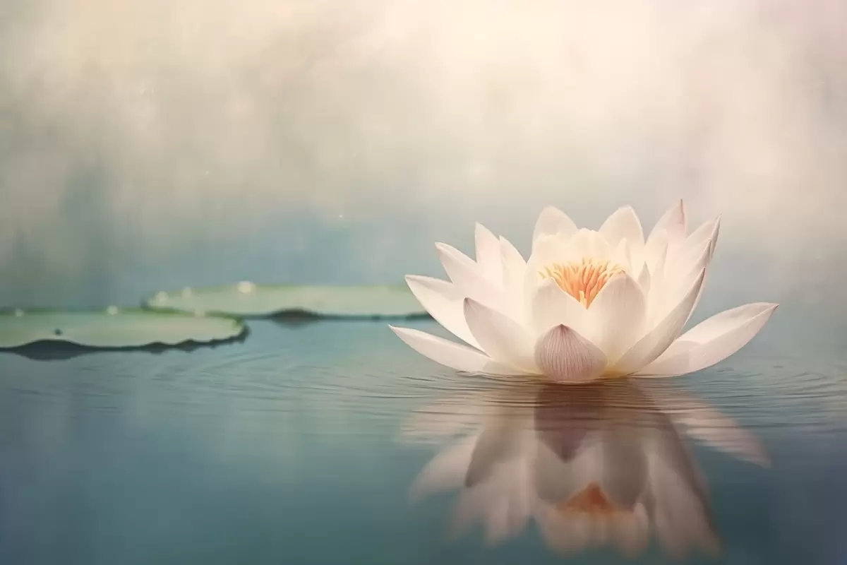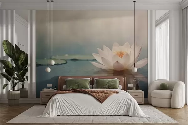 Fototapet Vit lotusblomma på vattnet Nr. w04272
